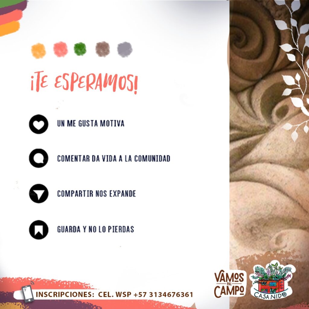 Este es un taller único en medio de la ciudad. Conocerás Casa Nido, un ecosistema cultural, con huertas, compostaje, recolección de agua lluvias, construcción en guadua, murales, arte, pinturas y barro. Es un espacio que busca ser sustentable en medio de la ciudad.